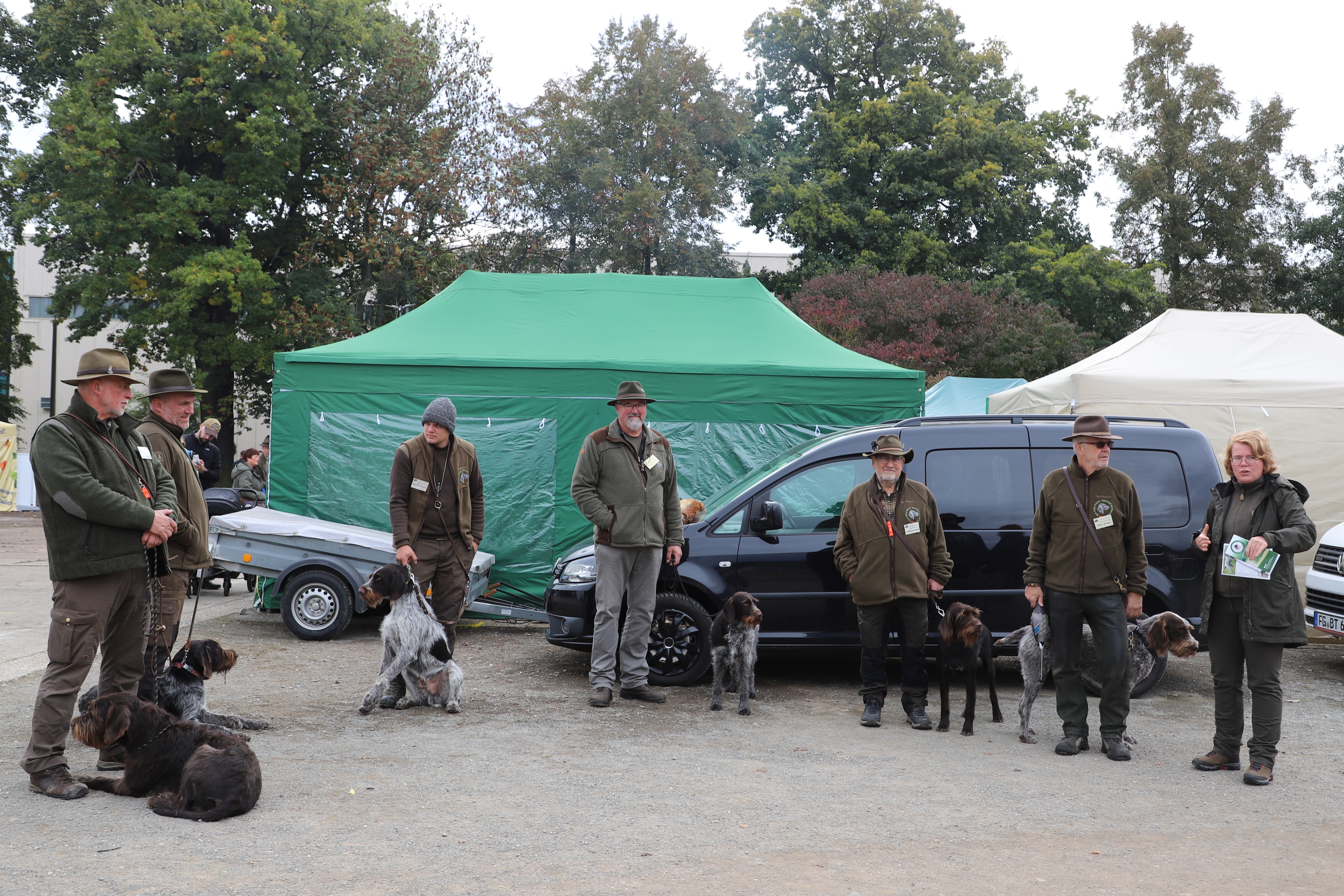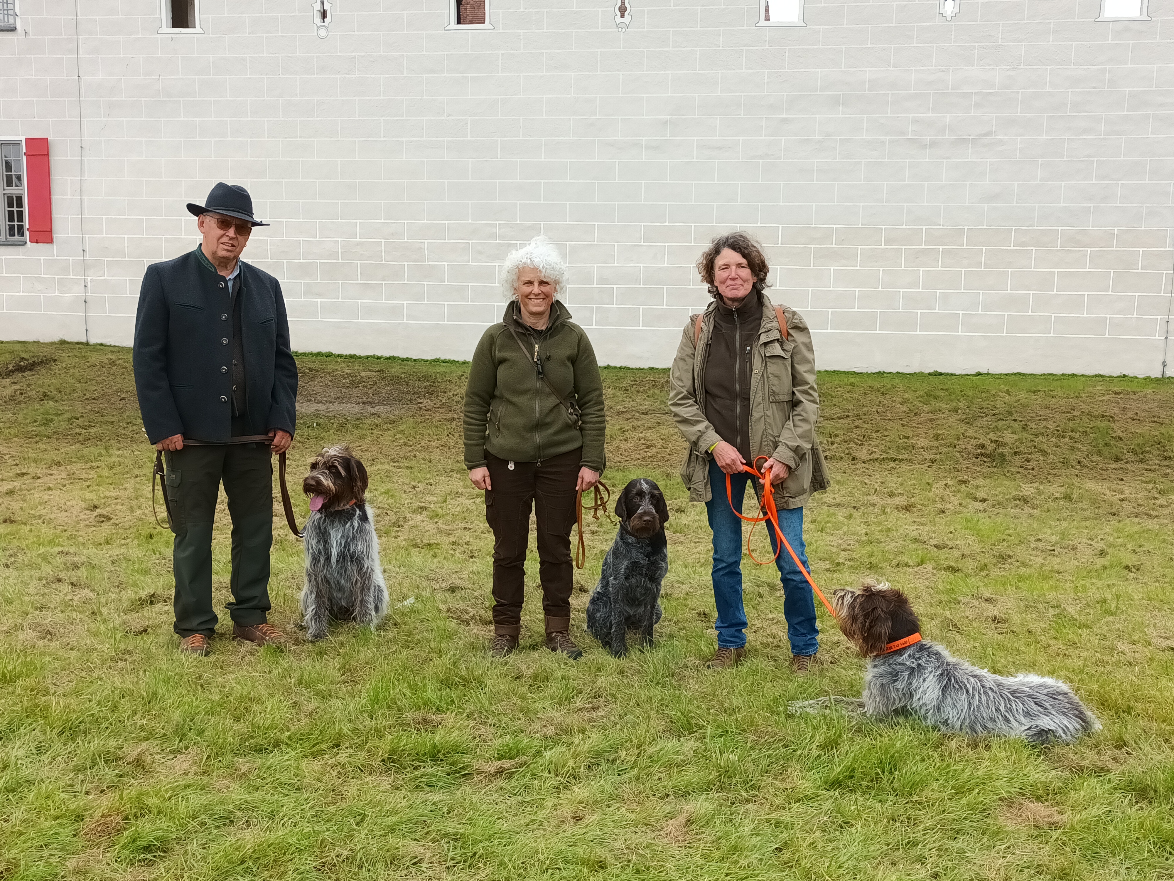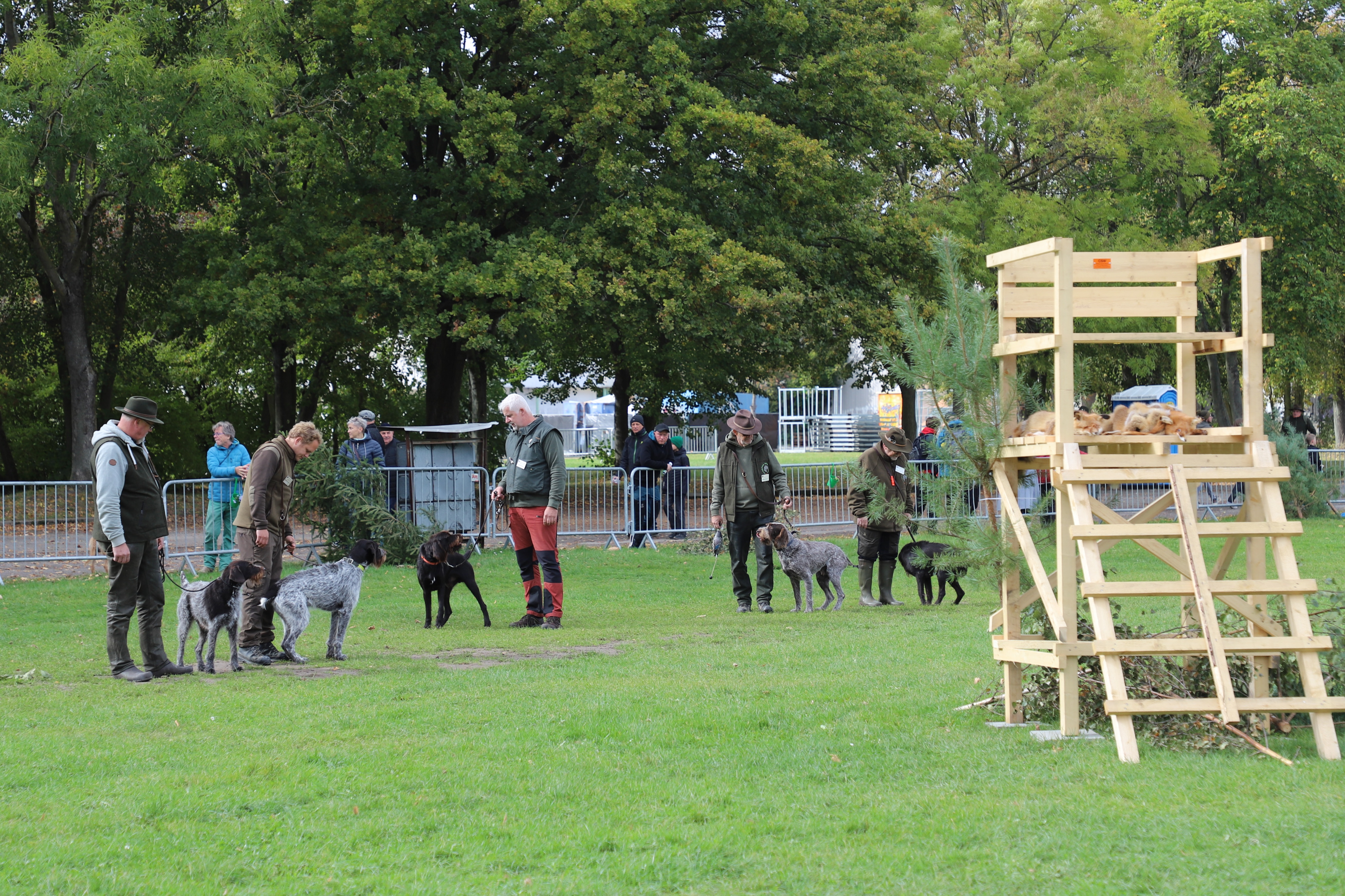 Gemeldet waren drei Böhmische Rauhbärte und ein ungarischer Vorstehhund, die alle um 7:30 Uhr auf ihren Einsatz warteten. Nach kurzer Begrüßung durch den ersten Vorsitzenden und Prüfungsobmann Simon Föcking ging es auch bereits 15 Minuten später ins Revier, denn es wurden schnell hohe Temperaturen erwartet.