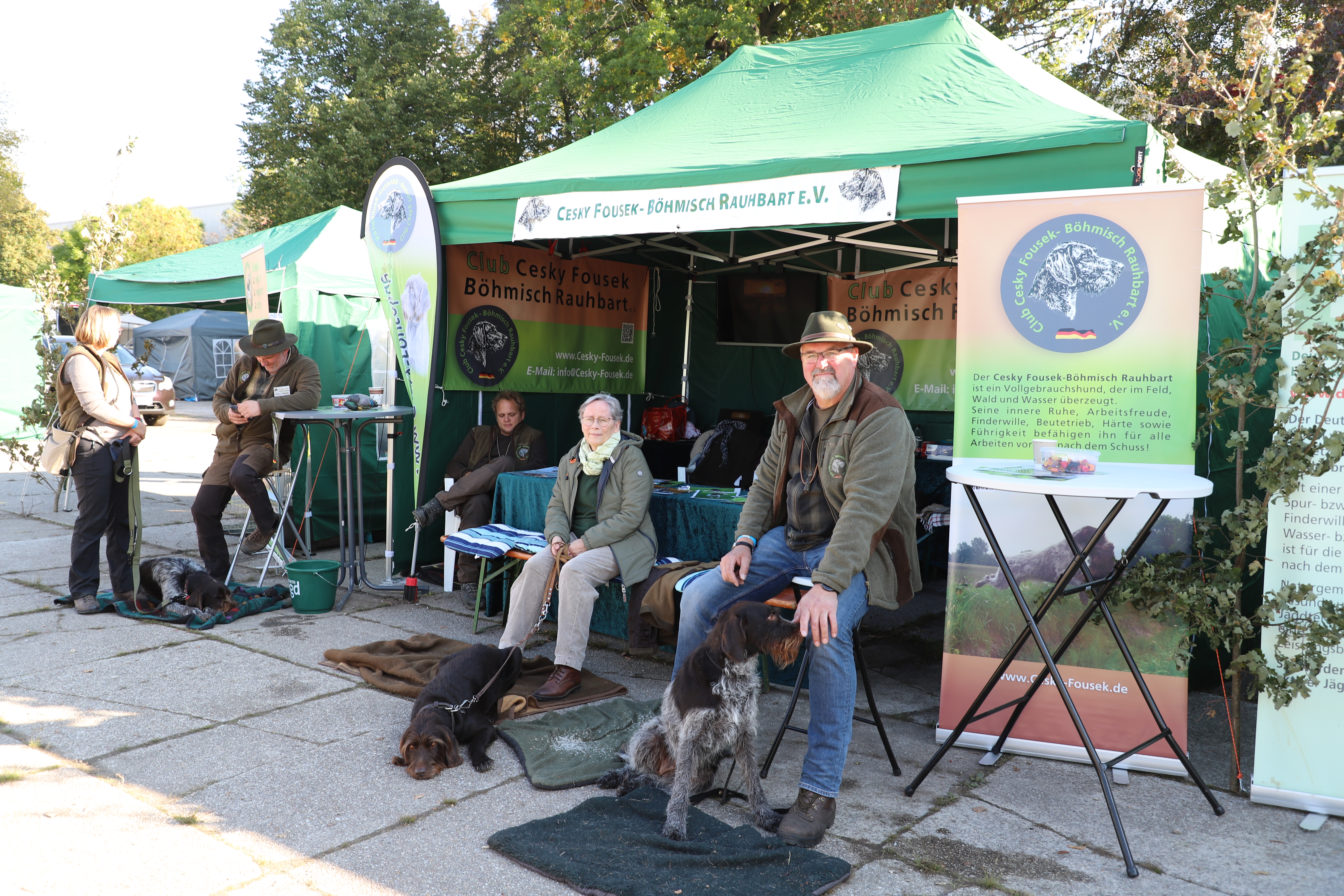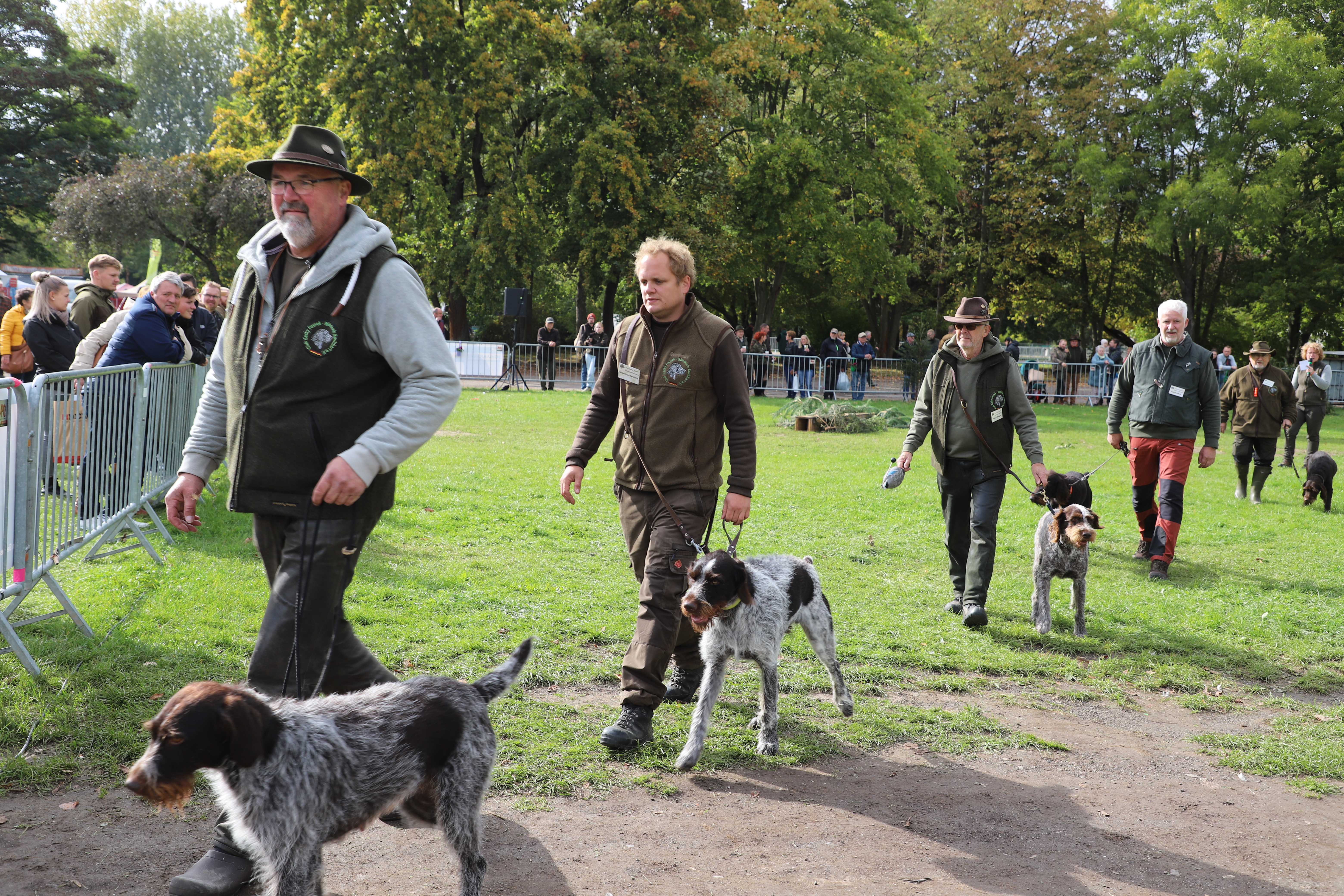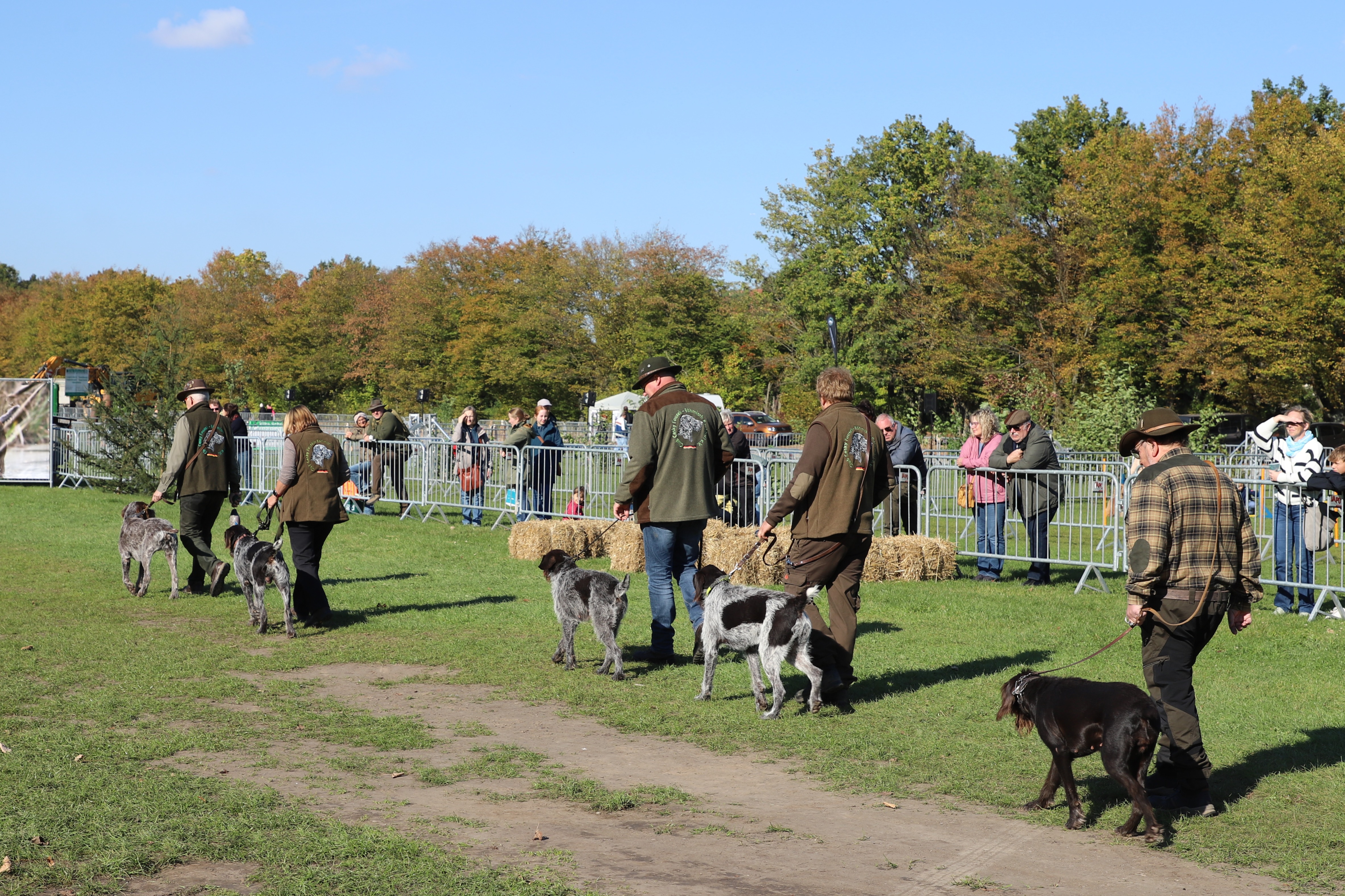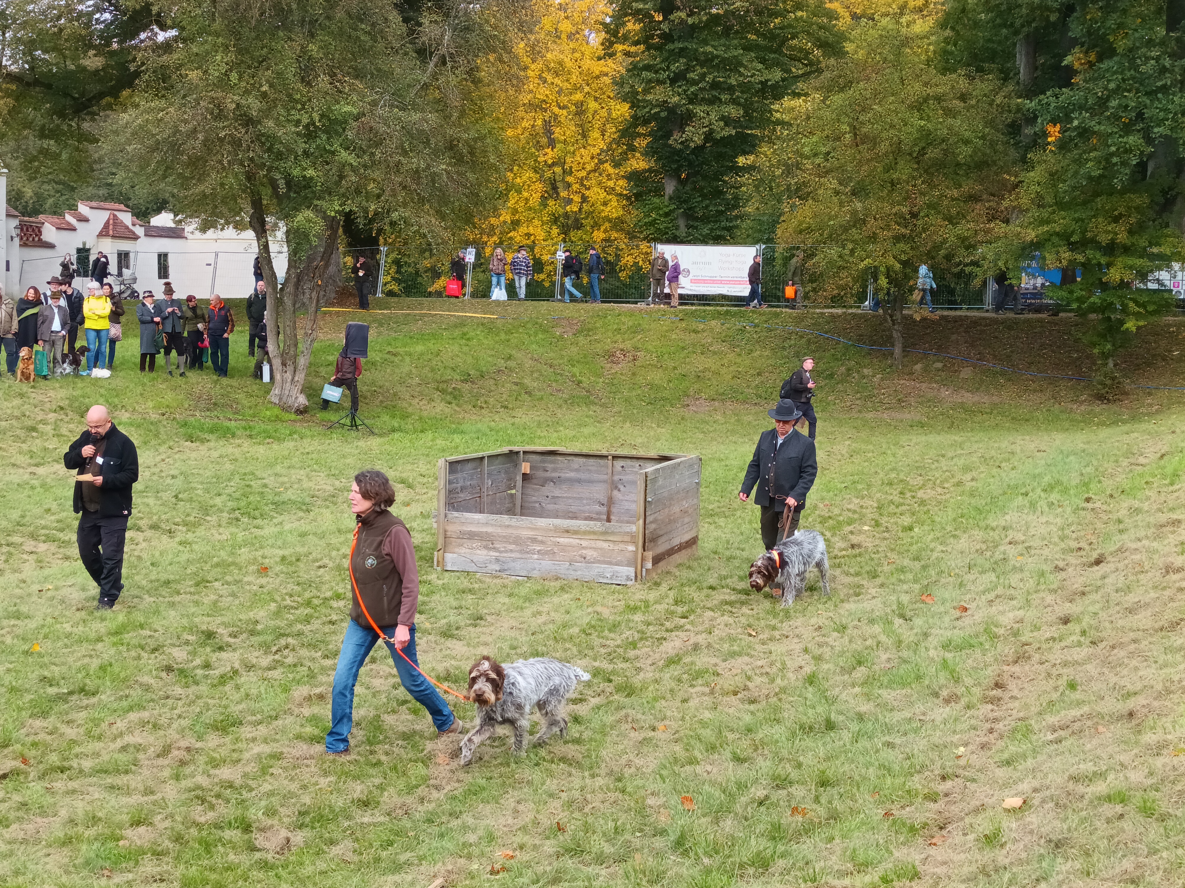 Gemeldet waren drei Böhmische Rauhbärte und ein ungarischer Vorstehhund, die alle um 7:30 Uhr auf ihren Einsatz warteten. Nach kurzer Begrüßung durch den ersten Vorsitzenden und Prüfungsobmann Simon Föcking ging es auch bereits 15 Minuten später ins Revier, denn es wurden schnell hohe Temperaturen erwartet.
